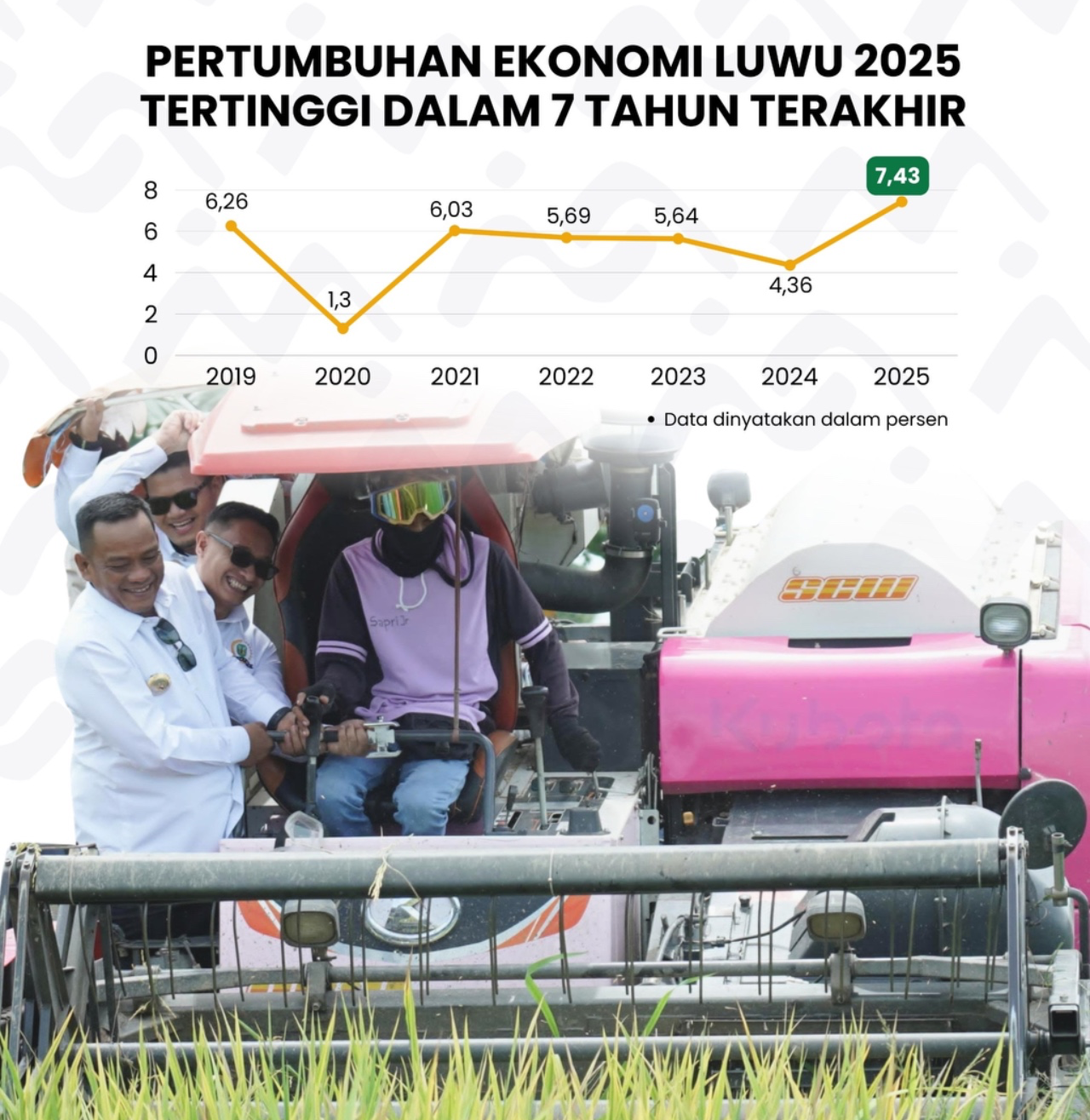 “Capaian pertumbuhan ekonomi ini menjadi indikator bahwa arah pembangunan daerah berada pada jalur yang tepat. Pemerintah akan terus memperkuat sektor unggulan, khususnya pertanian, sekaligus mendorong peningkatan investasi dan daya beli masyarakat,” ungkap Patahudding saat memberikan keterangan resminya kepada Tim Media Center Diskominfo-SP Luwu.