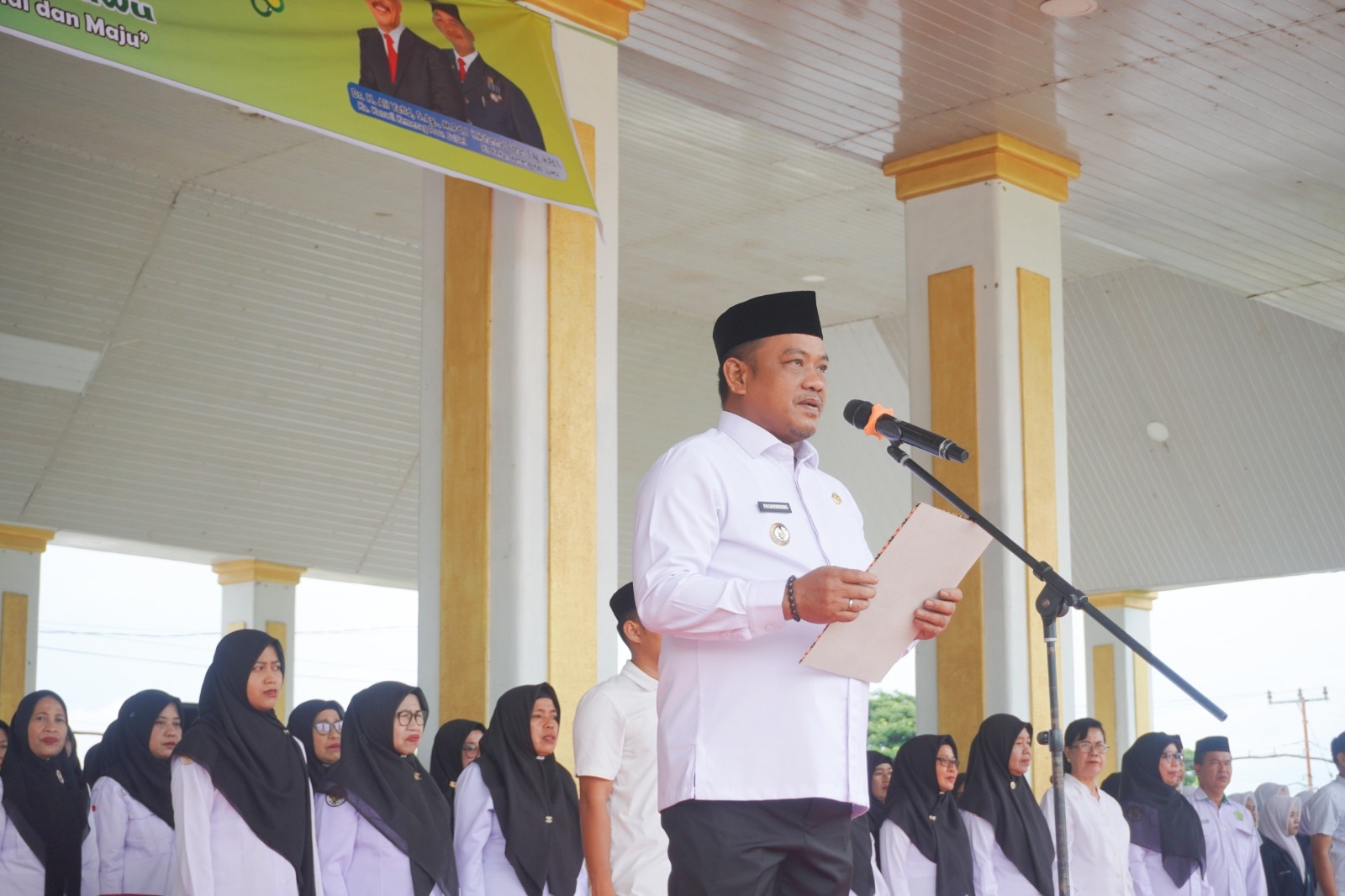 Bertindak sebagai inspektur upacara, Bupati Luwu, H. Patahudding, membacakan sambutan seragam Menteri Agama RI.