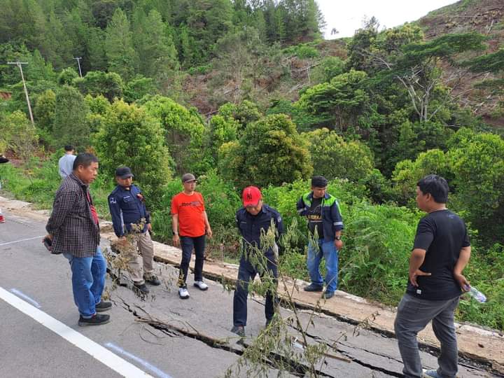 Bersama tim teknis yang dipimpin Kadis PUTR Luwu langsung menuju ke lokasi. Jalan yang baru saja selesai dikerjakan melalui bantuan keuangan Propinsi Sulawesi Selatan tahun anggaran 2023 itu mengalami retakan dan penurunan sepanjang 15 meter.